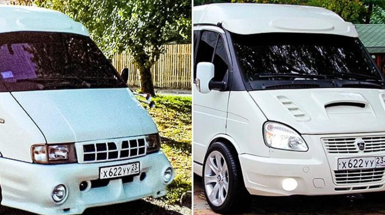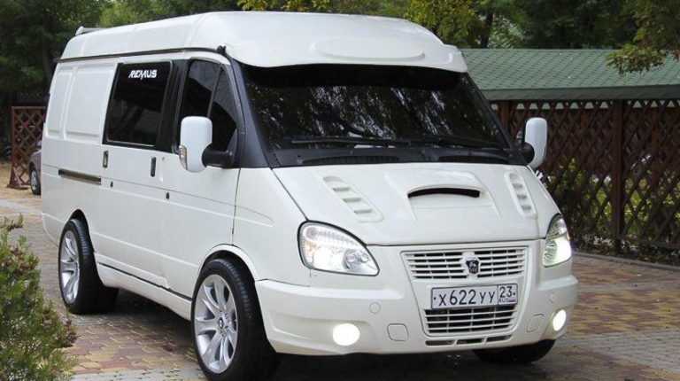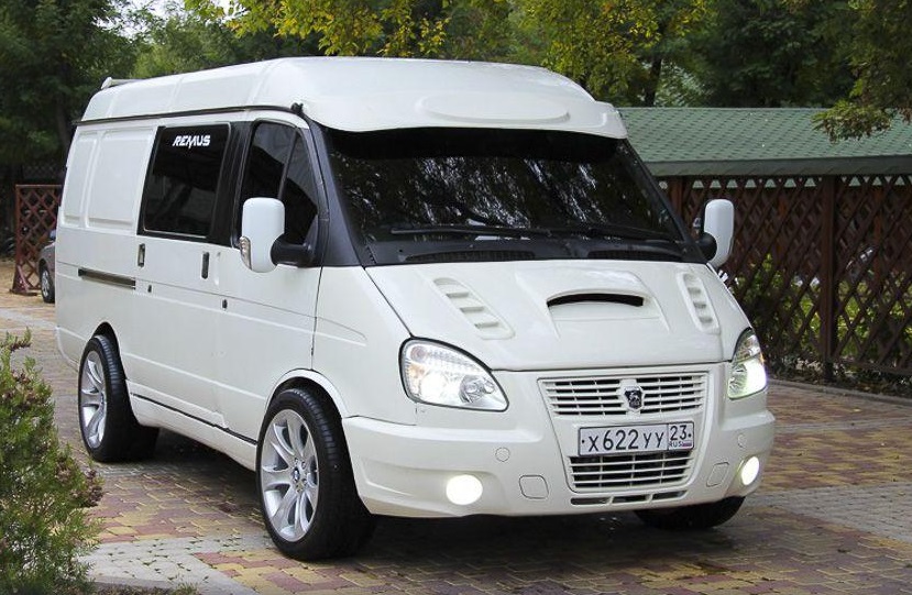 Затем была заменена вся носовая часть – передние крылья и решетка радиатора, позаимствованные от «ГАЗель Бизнес». Крышку капота украсили эффектные воздухозаборники.