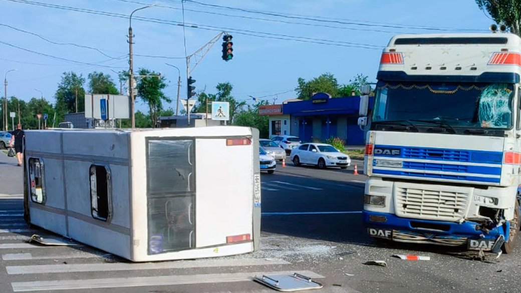 Отмечается, что инцидент произошел утром 24 июня на Терминале. По предварительным данным, фура двигалась по Никопольскому шоссе и не предоставила преимущество маршрутке №210, которая ехала со стороны проспекта Металлургов. В результате произошло столкновение. От удара маршрутка, в которой находились пассажиры, перевернулась.