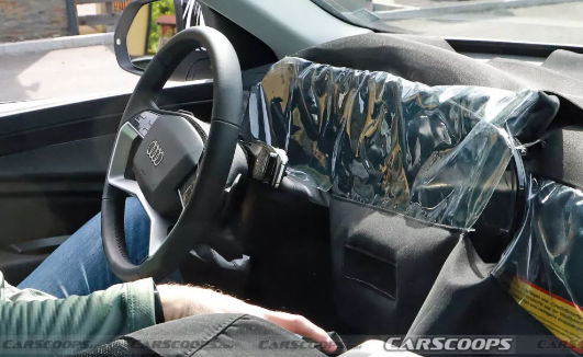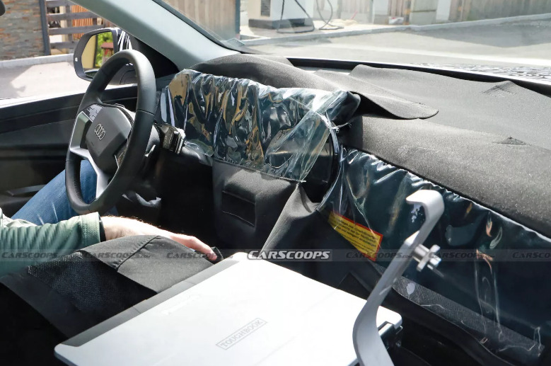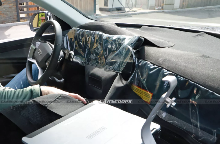 Шпионам удалось запечатлеть не только экстерьер тестового мула, а и заглянуть в его салон. Кабина хоть и прикрыта маскировочной пленкой, но даже сквозь нее можно увидеть некоторые изменения. В салоне Q7 установлен большой изогнутый дисплей, который объединяет цифровую приборную панель и мультимедию, и отдельный полноразмерный экран для переднего пассажира. Аналогичная комбинация используется в Q6. Также можно отметить наличие рулевого колеса с сенсорными кнопками.