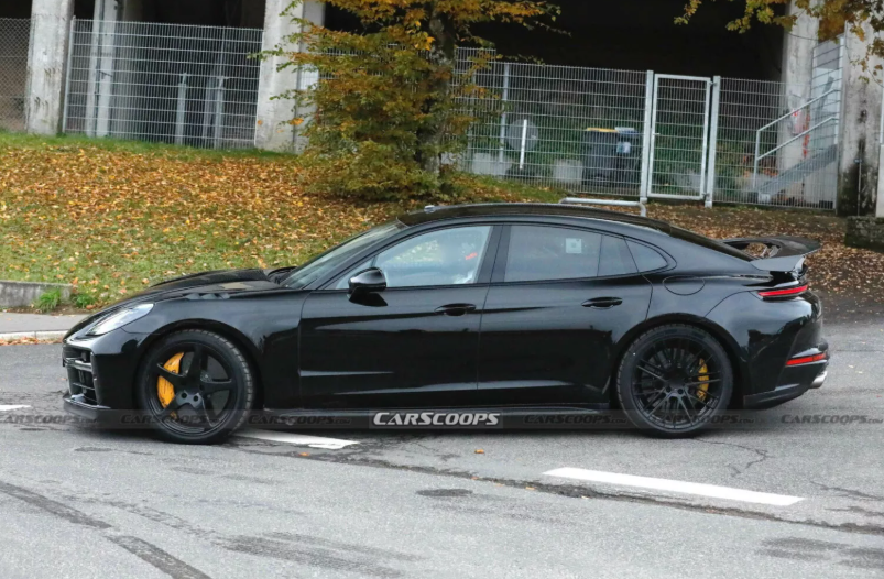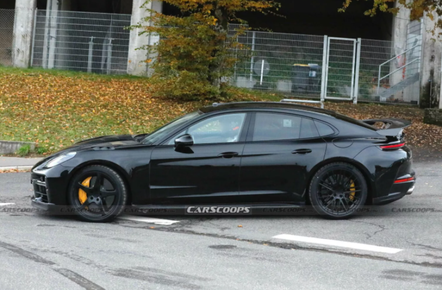 Новый «заряженный» седан Panamera был замечен во время испытаний на Нюрбургринге. У него огромное фиксированное антикрыло на корме, вентиляционные прорези в передних крыльях, еще массивные карбон-керамические тормоза. Ни версия GTS, ни Turbo S E-Hybrid не выглядят настолько заточенными на большие скорости. Подобное оснащение не подходит для роскошного круизера, это элементы гоночных автомобилей.