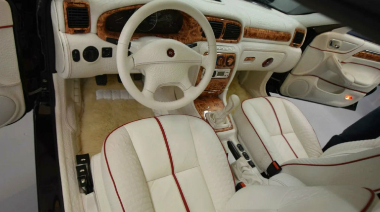 Бывший владелец существенно “прокачал” свой автомобиль, сделав акцент на интерьере “Волги”. Салон авто отделан белой кожей крокодила, а напольные коврики изготовлены из овчины. Также овчиной выстелили багажник машины. В отделке появились элементы из полированного кедрового дерева. Для создания еще большей пафосности в автомобиль интегрировали подсветку с рубиновым оттенком, а на капоте разместили хромированного “Оленя”, который является обязательным атрибутом модели.