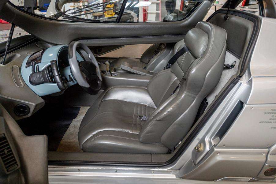 Салон отделан натуральной серой кожей и укомплектован бортовым компьютером, асимметричным рулевым колесом Nardi и разделенными консолью регулируемыми спортивными сидениями. В оснащении автоматический климат-контроль, аудиосистема JVC с CD-плеером, кассетной декой и эквалайзером. Пассажирская сторона оборудована полукруглым бутафорским рулевым колесом.