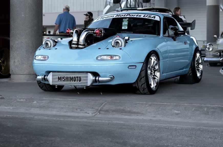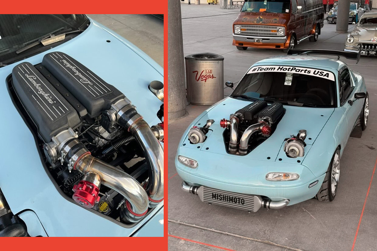 Благодаря выставке тюнинга и аксессуаров SEMA, которая в очередной раз гостеприимно распахнула свои двери в Лас-Вегасе, петролхеды смогут в полной мере оценить мастерство как фирменных ателье, так и отдельных представителей мира кастомайзинга. Одним из ярких примеров стал необычный вариант модернизации любимого многими родстера Mazda МХ-5 Miata первого поколения, которому на место штатной рядной “четверки” установили… битурбированный мотор Lamborghini V10. Автором этого проекта выступила компания Hot Parts USA, которая представила его на своей страничке в Instagram.