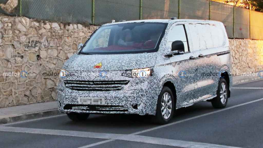 Новинка была создана в рамках партнерства с компанией Ford. Если ранее она была родственной с Multivan T7, то теперь – основана на Ford Transit Custom. Несмотря на плотный камуфляж, можно отметить внешнее сходство с донором. У фургона аналогичные боковые линии и вертикальные задние фонари, только с другой графикой. При этом фары модели достались от Multivan T7.