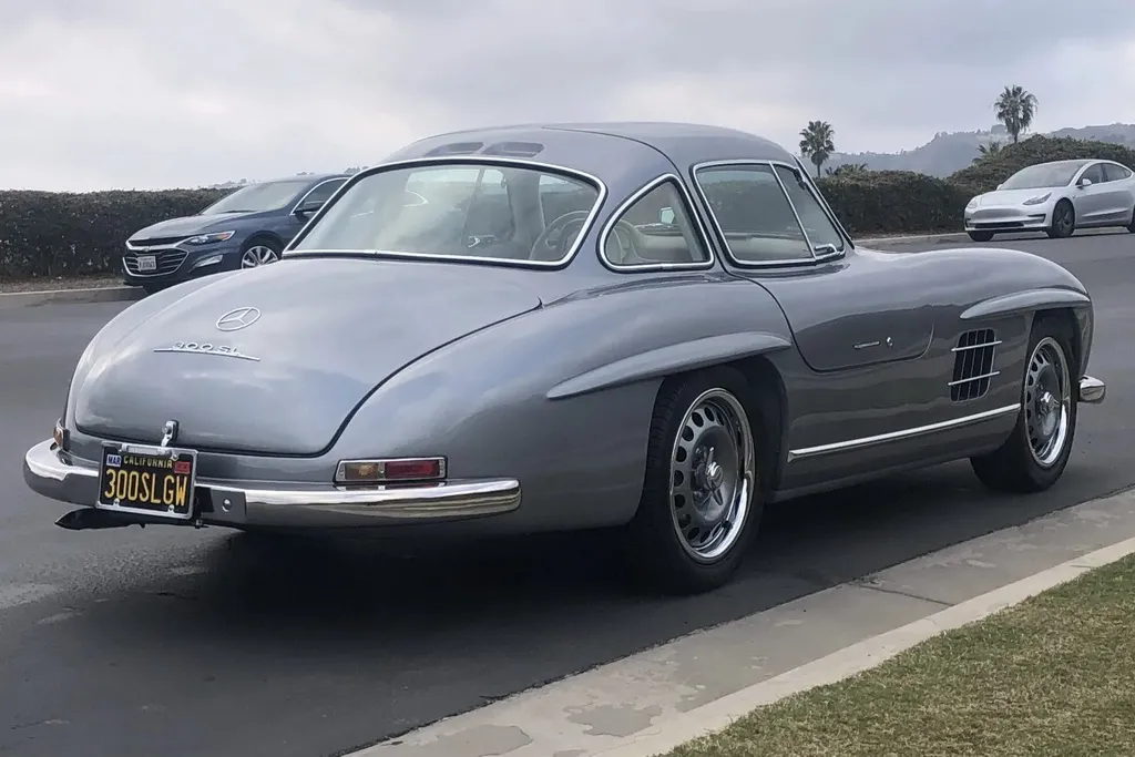 Первоначально этот Mercedes-Benz сошел с завода как SLK 320 в 2001 году. Несколько лет назад машину переделали в реплику культового Mercedes-Benz 300 SL. Кузов модели выполнен из стекловолокна и окрашен в серый цвет. Визуально он практически полностью повторяет своего легендарного предка, включая его знаменитые двери типа «крыло чайки».