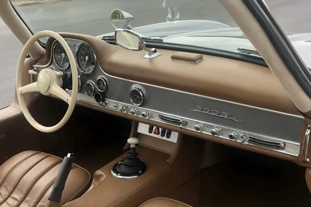 Салон выполнен в стилистике оригинального SL 50-х годов. Он оснащен сиденьями от модели 190 SL с кожаной отделкой, откидывающимся вниз рулевым колесом, приборной панелью VDO и кондиционером.