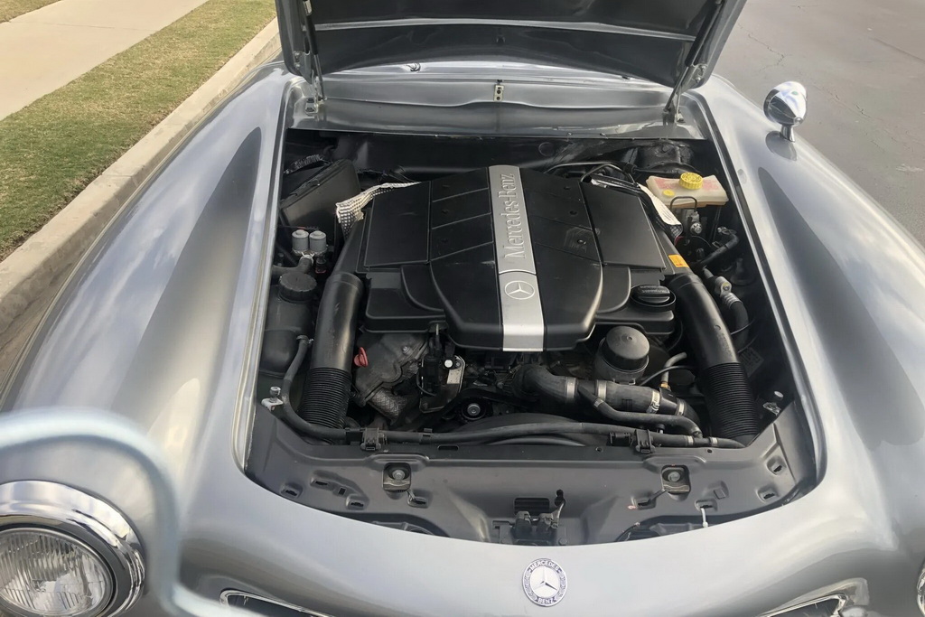 Силовая установка и ходовая часть SLK были сохранены. Автомобиль оснащен 3,2-литровым V6 мощностью 215 л.с., 6-ступенчатой механической коробкой передач, гидроусилителем руля, вентилируемыми дисковыми тормозами с усилителем и независимой подвеской всех колес. 17-дюймовые стальные диски в цвет кузова имеют хромированные ободки и центральные гайки-«обманки». Они обуты в шины Kumho Solus размерностью 205/55 спереди и 215/50 – сзади. До конца торгов осталось 4 дня. На момент публикации стоимость реплики составила 141 тысячу долларов.