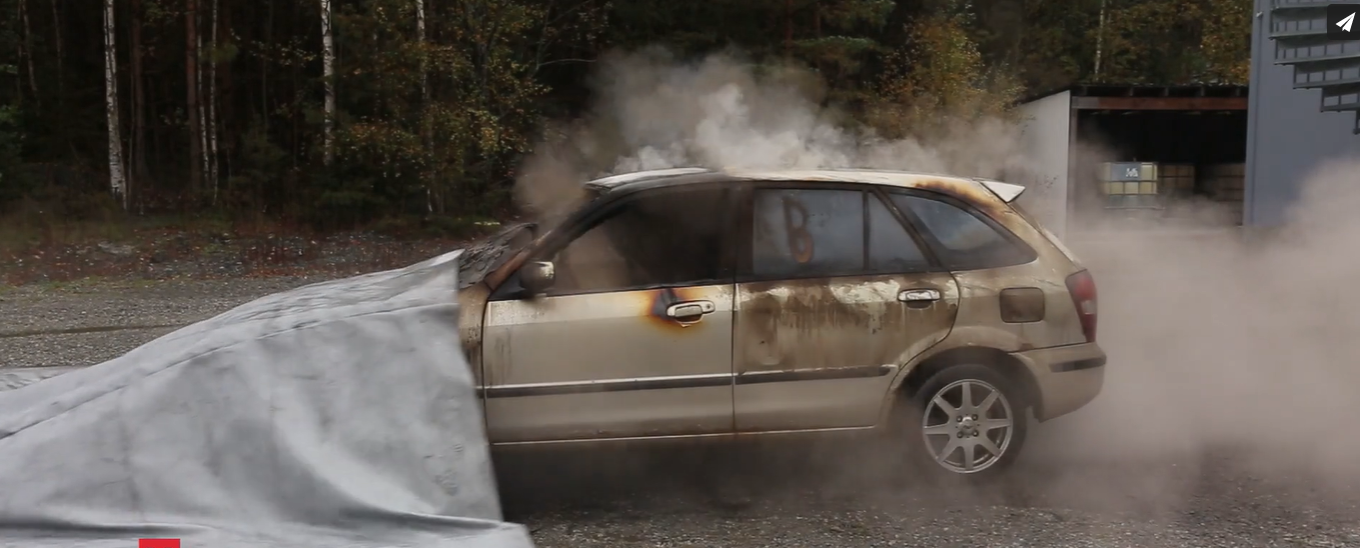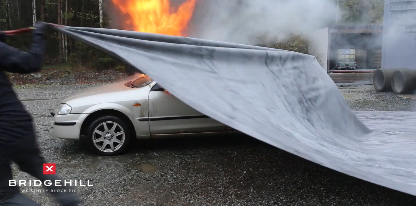Для того, чтобы потушить загоревшийся автомобиль, пожарные используют тонны воды и огромное количество времени. Решение, которое поможет оперативно справиться с огнем, нашла норвежская компания Bridgehill. Ее специалисты разработали специальное противопожарное покрывало. Оно позволяет локализовать очаг возгорания за считанные минуты. Принцип работы очень прост и основан на том, чтобы ограничить доступ кислорода к огню.