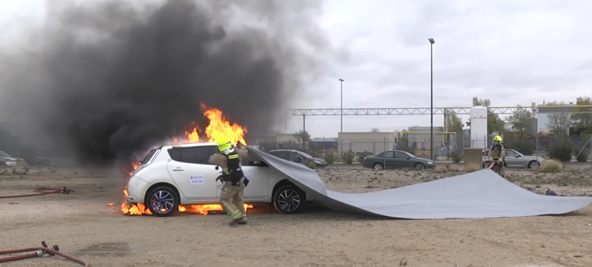 Сразу снимать одеяло с авто не рекомендуется. Нужно подождать не менее 20 минут. В идеале это должны делать пожарные, особенно если загорелся электромобиль. Ведь литиевые батареи могут гореть без кислорода. Еще одним плюсом этой разработки является то, что во время тушения машины водой в воздух выделяется огромное количество химикатов. Покрывало позволяет избежать отравления окружающей среды.