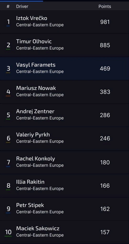 Зокрема Тимур Ольховик та Фарамець Василь зайняли подіум, а саме Тимур друге та Василь третє місце, а Ілля, котрий приєднався по ходу сезону, встиг вирватись на 8му сходинку серед пілотів з центрально-східного регіону.