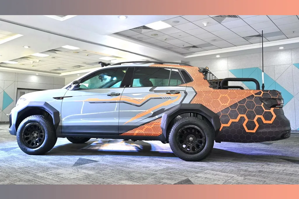 Проект был создан под руководством опытных специалистов из Skoda Auto Volkswagen India. Базирующаяся в Пуне компания курирует бренды VW Group в Индии, обладая богатым опытом в области НИОКР. За основу для своих изысканий индийские студенты выбрали субкомпактный кроссовер VW Taigun, который разработан в Индии для местного рынка. На его базе в рамках проекта был создан оригинальный концептуальный пикап. Пятиместный салон машины практически не претерпел изменений, а вот в задней части появилась большая грузовая платформа для перевозки самых разнообразных грузов.