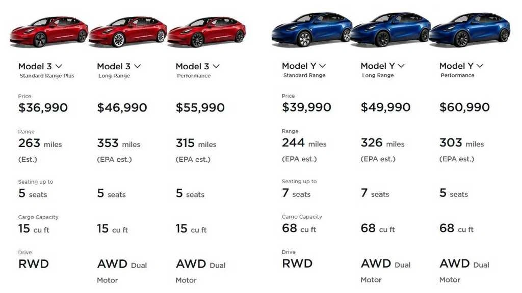 Базовые версии указанных электромобилей стали дешевле на одну-две тысячи долларов. Если ранее за Model 3 Standard Range Plus нужно было отдать 37 990 долларов, то теперь она обойдется в 36 990 долларов. При этом за топовую версию Performance, наоборот, придется заплатить на 1000 дороже – 55 990 долларов. Менять стоимость версии Model 3 Long Range не стали и теперь она на 10 000 долларов выше базовой модификации. При этом ее преимущество заключается в наличии второго мотора и более мощной батареи.