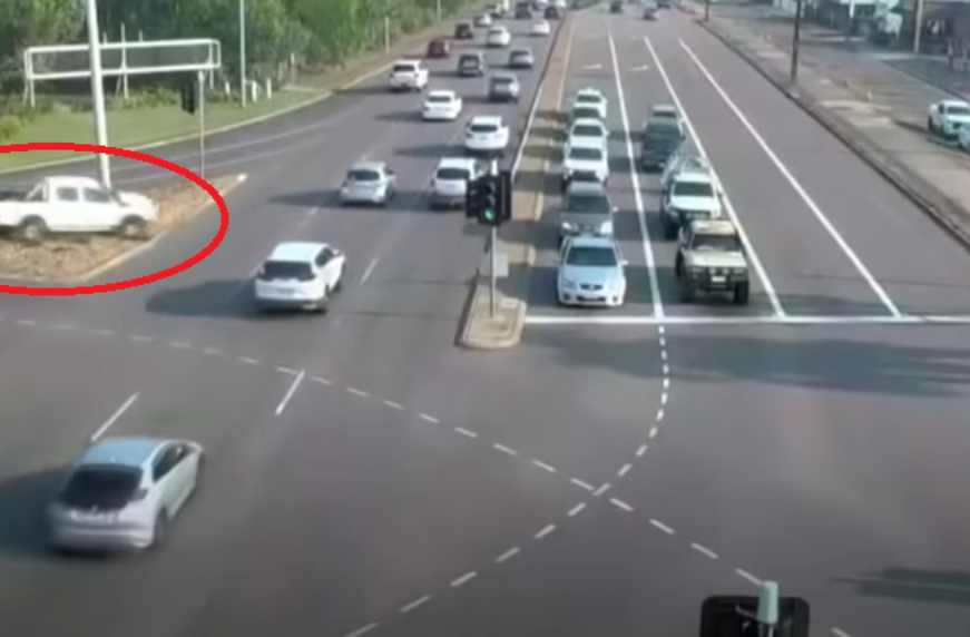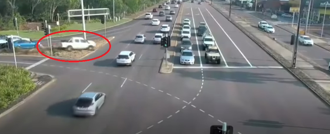 Инцидент произошел в городе Дарвин (Северная Территория, Австралия). Женщина-водитель за рулем пикапа пыталась совершить обгон, но в какой-то момент потеряла контроль над автомобилем. Он на полном ходу пересек разделительный островок и выехал на шестиполосную трассу. Водитель Nissan Rouge успел нажать на тормоз, чтобы не столкнуться с пикапом. Дальше ситуация выглядит еще эпичнее.