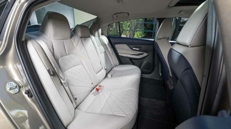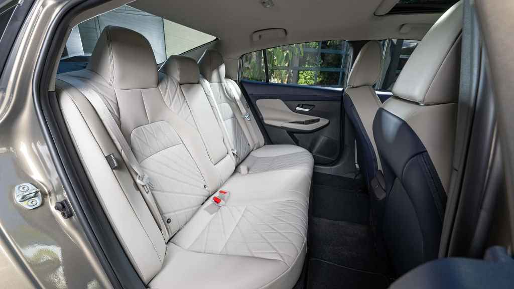 Отличить новинку от предшественника можно по динамичному силуэту, более покатой крыше и передней части в стиле электрического кроссовера Ariya с тонкими фарами и оригинальной решетке радиатора. Что касается кормы, то здесь установлены новые фонари, которые объединены между собой световой полосой. Комплектация SR получила спойлер на крышке багажника, черные пороги, двухцветную крышу и иные 18-дюймовые колесные диски.