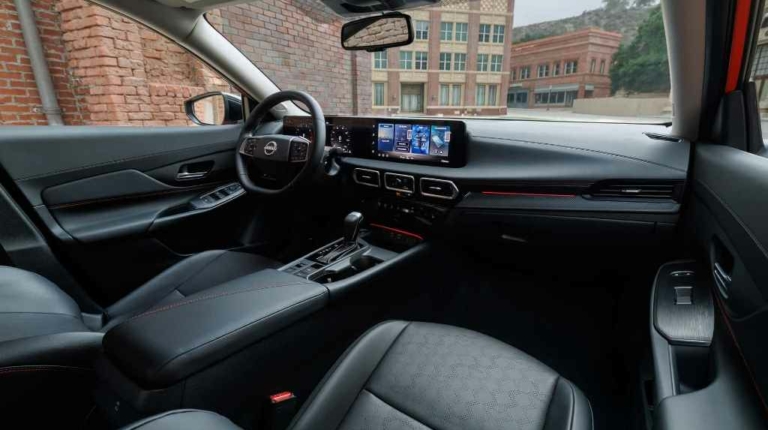 Sentra также немного прирос в размерах и теперь достигает в длину 4656 мм при колесной базе 2705 мм. Его ширина и высота составляют 1816 и 1445 мм соответственно. В результате салон стал немного просторнее. В оснащение включили 12,3-дюймовую цифровую приборную панель и мультимедию аналогичным экраном и поддержкой Android Auto и Apple CarPlay. Оба экрана установлены под единым стеклом. В комплектации SR появилась красная подсветка и селектор режимов движения.