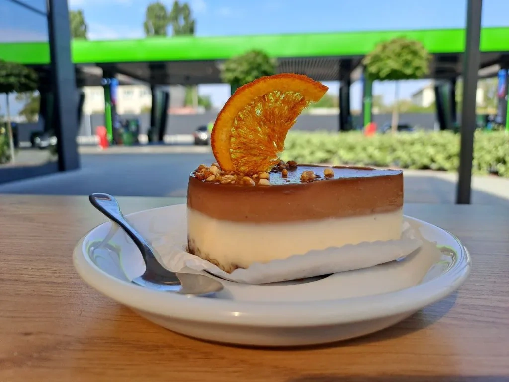 Навіть такі бувалі мандрівники, як «автоцентрівські» журналісти, що об’їхали усіма видами транспорту буквально півсвіту, були трохи вражені вишуканістю цього десерту. Молочний шоколад в основі символізує ніч, білий шоколад – відповідно, день. А чистий прозорий верх з «вмороженою» апельсиновою скибкою – певно, наш однозначно позитивний заряд на цілий день, який ми отримали, завітавши того ранку на АЗК UPG.