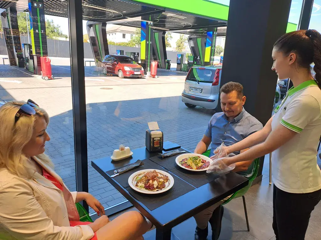 Ідея заправляти на АЗК крім машин ще й їхніх пасажирів не нова. Новим є підхід до цієї справи, продемонстрований національною мережею UPG. Неймовірна річ, але її VIVO café успішно поєднують фірмовий фастфуд для тих, хто поспішає з суто ресторанними авторськими стравами від шеф-кухаря.