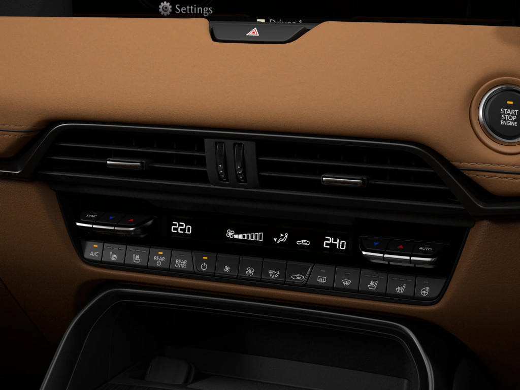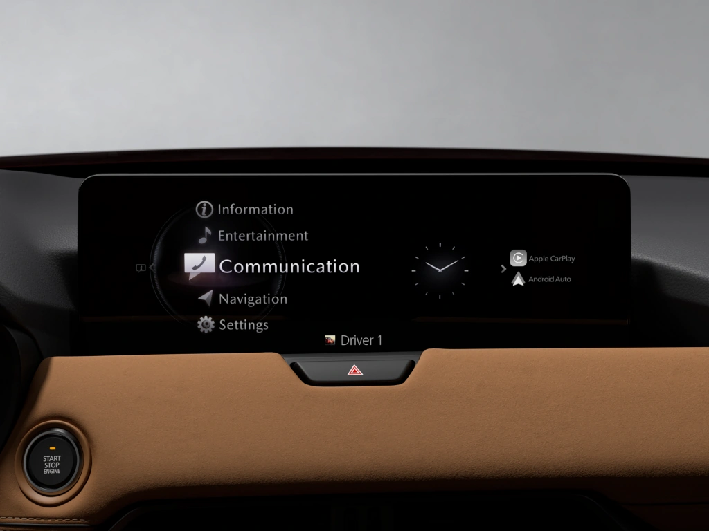 На передній панелі CX-90 розташовані три основні дисплеї інтерфейсу HMI, кожен з певними функціоналом та можливостями відображення контенту. Проєкційний дисплей Active Driving безпосередньо перед водієм надає усю необхідну для керування інформацію — від поточної швидкості і дорожніх знаків до вказівок навігаційної системи. На панелі приладів ця інформація відображається у розширеному форматі з додаванням попереджень про технічний стан автомобіля. На центральному дисплеї — інформація, що призначена і для пасажирів також. Дисплеї цифрової панелі приладів та інформаційно-розважальної системи мають діагональ 12,3 дюйми.