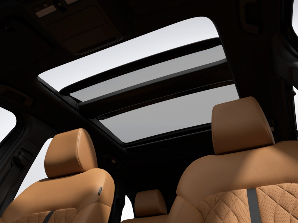 Mazda CX–90 оснащена великим панорамним дахом, який створює в салоні відчуття яскравості, відкритості та забезпечує чудовий огляд вперед і вгору.