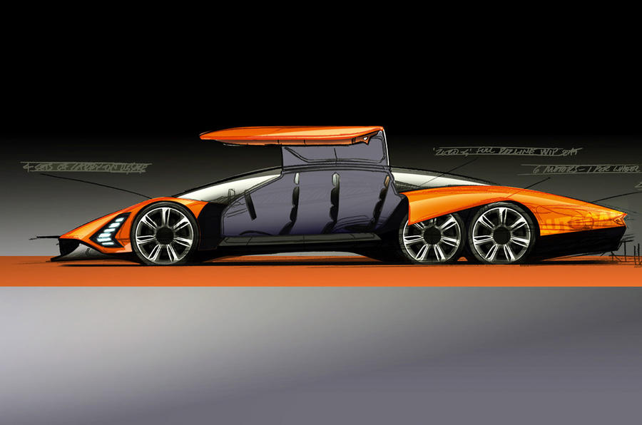 Решить проблему «тяжелой батареи» позволил шестиколесный привод, по одному двигателю на каждое колесо. Deep Space получит шесть электродвигателей мощностью 400 л.с. каждый. Это сделает его мощнее электрических гиперкаров Lotus Evija и Pininfarina Battista. Также электромобилю обещают завидный запас хода в 1000 км.
