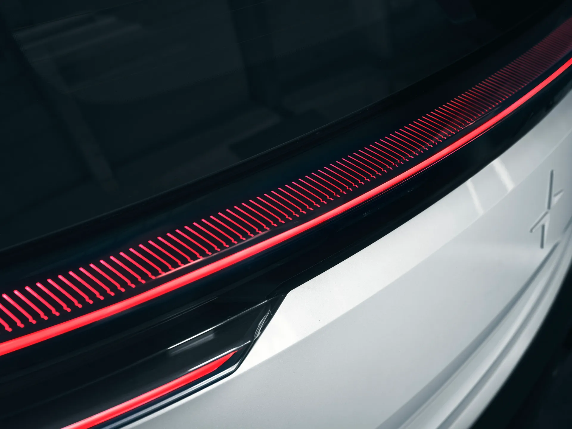 Экстерьер электромобиля выполнен в фирменном стиле марки и перекликается с моделями с индексами 1 и 2. Polestar 3 получил светодиодные фары «Молот тора», угловатую заглушку на месте решетки радиатора и бампер с широким воздухозаборником. На корме сохранилась светодиодная полоса, которая растянулась во всю ширину машины, и крупный спойлер. Панорамная крыша, выдвижные дверные ручки, накладки на боковых дверях и 21 или 22-дюймовые колесные диски с особым дизайном дополняют премиальный образ нового электрокара.