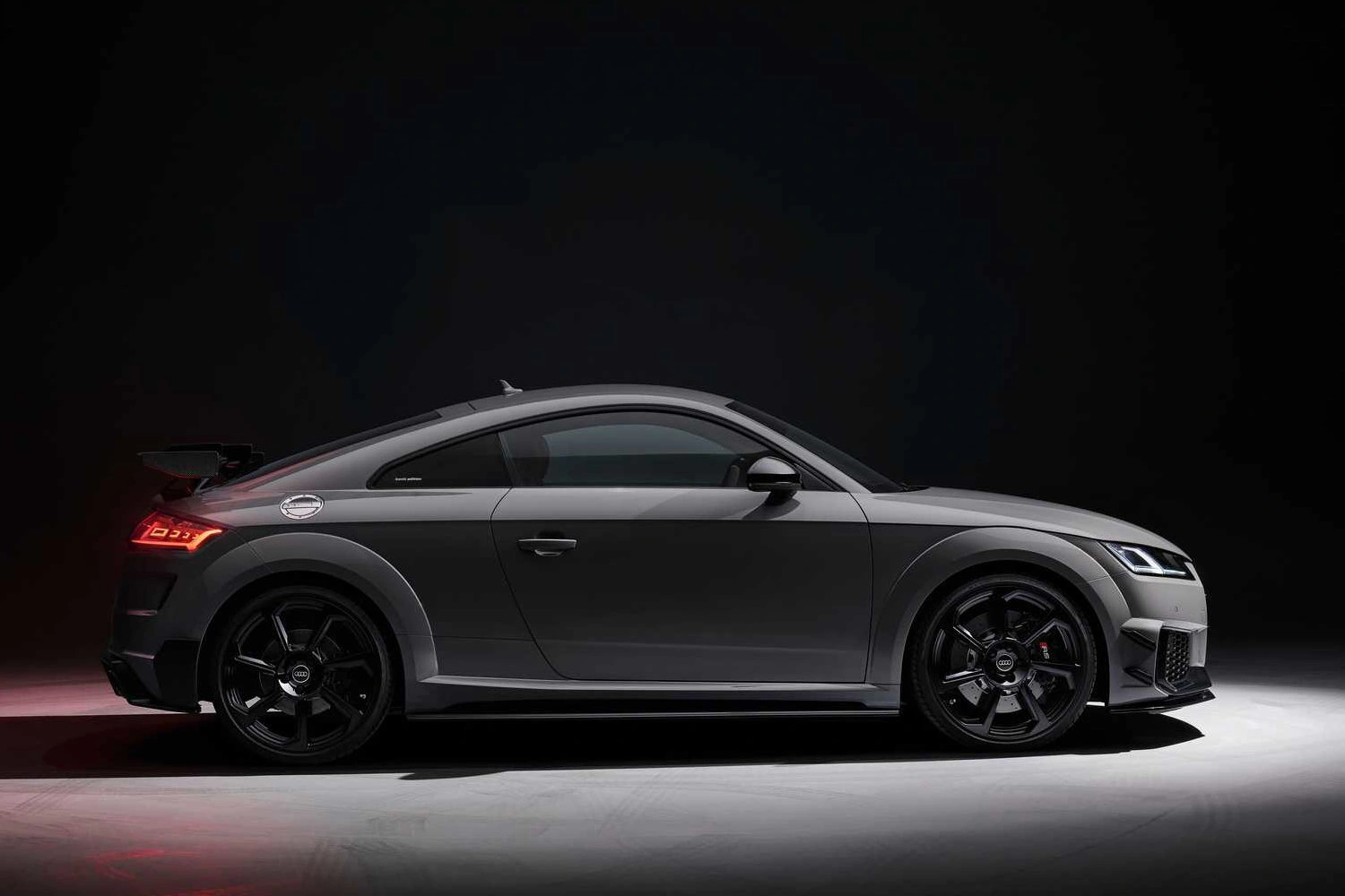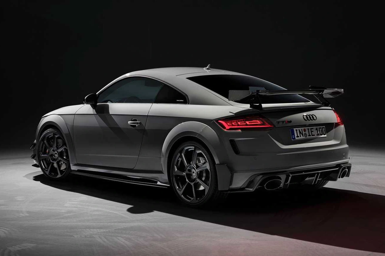 От базового Audi TT RS «юбилейное» купе отличается окраской кузова. Выбранный дизайнерами серо-стальной оттенок Nardo Grey отсылает к истокам модели. Дополняют образ оригинальные 20-дюймовые колесные диски, фирменный аэродинамический обвес и шильдики спецсерии. Также купе достались новые задние OLED-фонари.