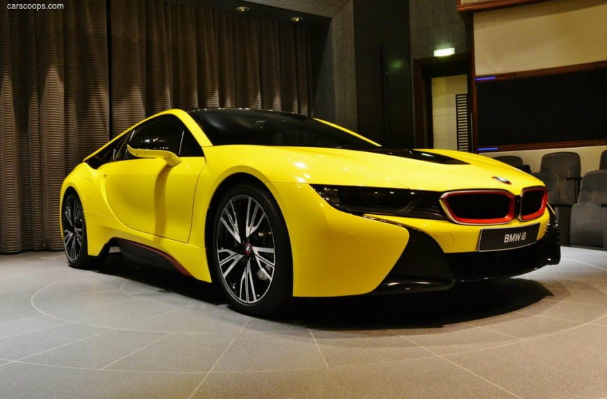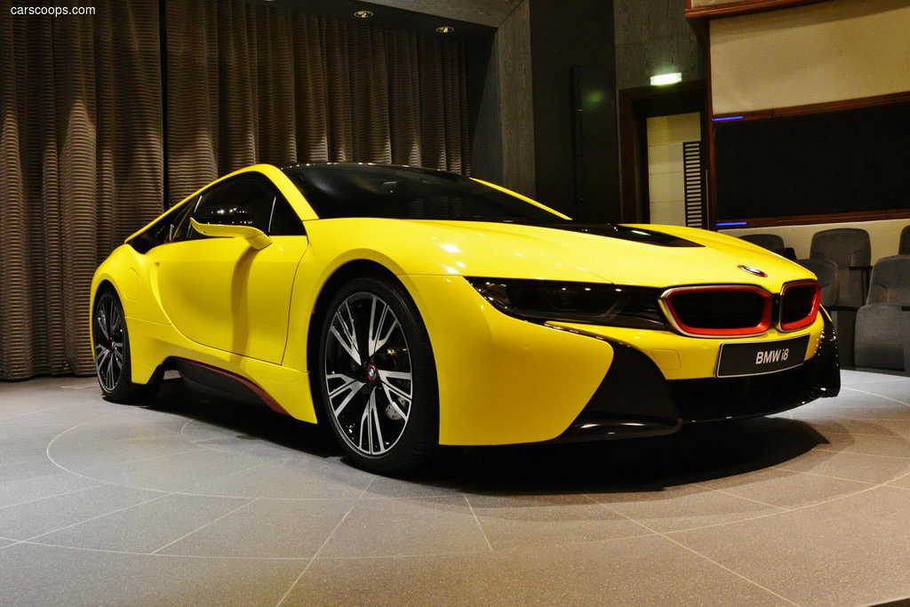 Решение BMW ограничить цветовую палитру гибридного спортивного автомобиля i8 к всего четырем вариантам (белый, серебристый, синий и серый), явно не пришлась по вкусу некоторым официальным дилерам компании. Так, дистрибьютор в Абу-Даби закатал рукава и оклеил два купе пленками ярко-зеленого и желтого цветов с красными акцентами. В пользу того факта, что перед нами на фотографиях машина не перекрашенная, а оклеенная пленкой, говорят необычно заклеенные датчики переднего парк-троника. В 2014 году BMW i8 по всему миру разошелся тиражом в 1741 единицу. Его гибридная силовая установка, электрический силовой агрегат которой может подзаряжаться от розетки, является одним из самых инновационных серийных силовых агрегатов.