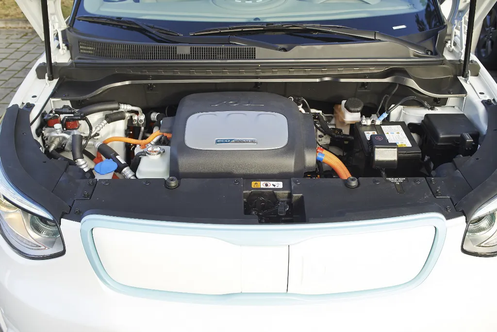 Вместо стандартного ДВС под капотом Kia Soul EV размещен компактный и легкий электромотор, выдающий 111 лошадиных сил, 285 Нм и обеспечивающий разгон до 100 километров в час за 11.2 секунды. Литий-ионная полимерная батарея, размещенная под полом салона, имеет емкость 27 киловатт-часов. Пробег при полной зарядке батареи составляет до 212 километров. Разъемы для зарядки Kia Soul EV размещены под сдвижной панелью, которая заменяет решетку радиатора. Добавим, что благодаря специальному индикатору на верхней части панели приборов статус процесса зарядки можно контролировать, даже находясь вне автомобиля.