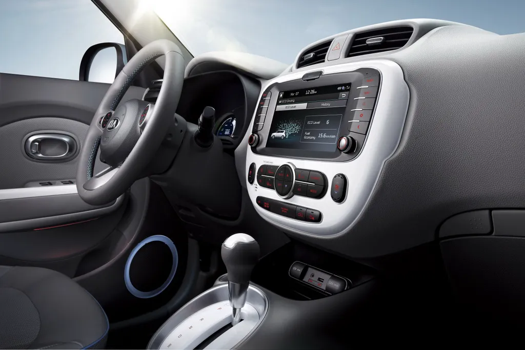 Салон Soul EV не слишком отличается от интерьера обычной версии, но значительная часть отделочных материалов выполнена из вторсырья. На центральной консоли размещены 8-дюймовый дисплей мультимедийной системы, тогда как данные трип-компьютера выводятся на цветной монитор диагональю 3,5 дюйма. В зависимости от комплектации Soul EV может быть оснащен как подогревом сидений обоих рядов, так и вентиляцией передних.