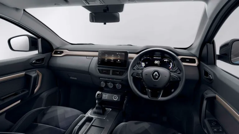 Салон Рено Кигер выглядит знакомо, так как выполнен в актуальной стилистике бренда. Несмотря на миниатюрность модели, внутри могут разместиться пять человек. В оснащение вошла цифровая приборная панель с 7-дюймовым экраном, мультимедийная система с дисплеем на 8 дюймов, фирменный руль и традиционный рычаг КПП. Отделка выполнена в черно-серых тонах, которые дополняют вставки бронзового цвета. В стандартную комплектацию входит шесть подушек безопасности и ряд систем помощи водителю.