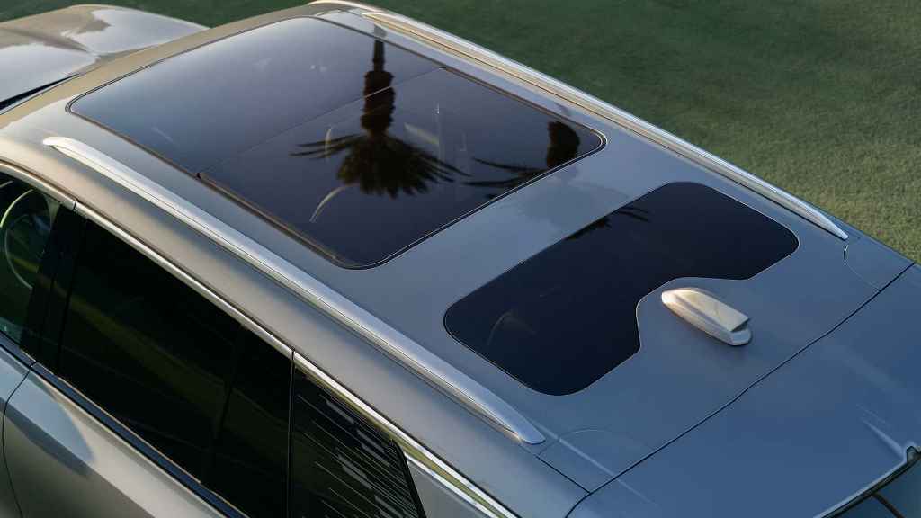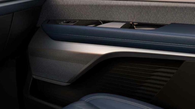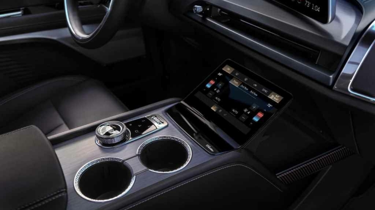 Салон выглядит не менее роскошно. В его оснащении доминирует 33-дюймовый дисплей. Он объединяет в себе цифровую приборную панель и мультимедийную систему. Есть плавающая центральная консоль. Она вмещает 8-дюймовый Command Center, а также двойной слот для беспроводной зарядки смартфона. Также установлены сиденья с функциями подогрева, вентиляции и массажа, есть пятизонный климат-контроль и аудиосистема AKG Studio с 23 динамиками, а еще фоновое освещение и панорамная крыша. Отделка салона выполнена из 100% переработанных материалов.