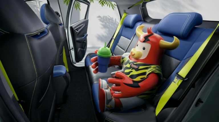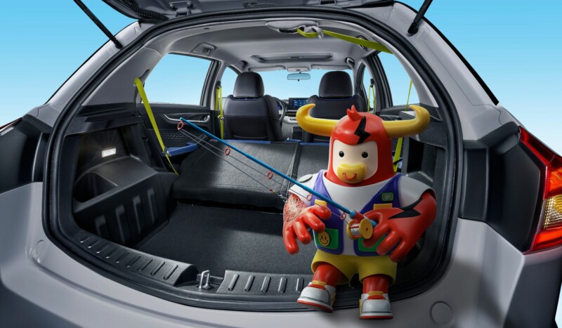 Электромобиль получил индивидуальный стиль, который сделает его узнаваемым. У него широкая решетка с вертикальными ламелями, светодиодная оптика и бампер с крупным воздухозаборником. На корме установлен спойлер, а по периметру кузова – темный обвес. Крыша выполнена в черном цвете. В качестве ярких акцентов производитель использовал вставки салатового оттенка.