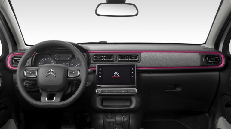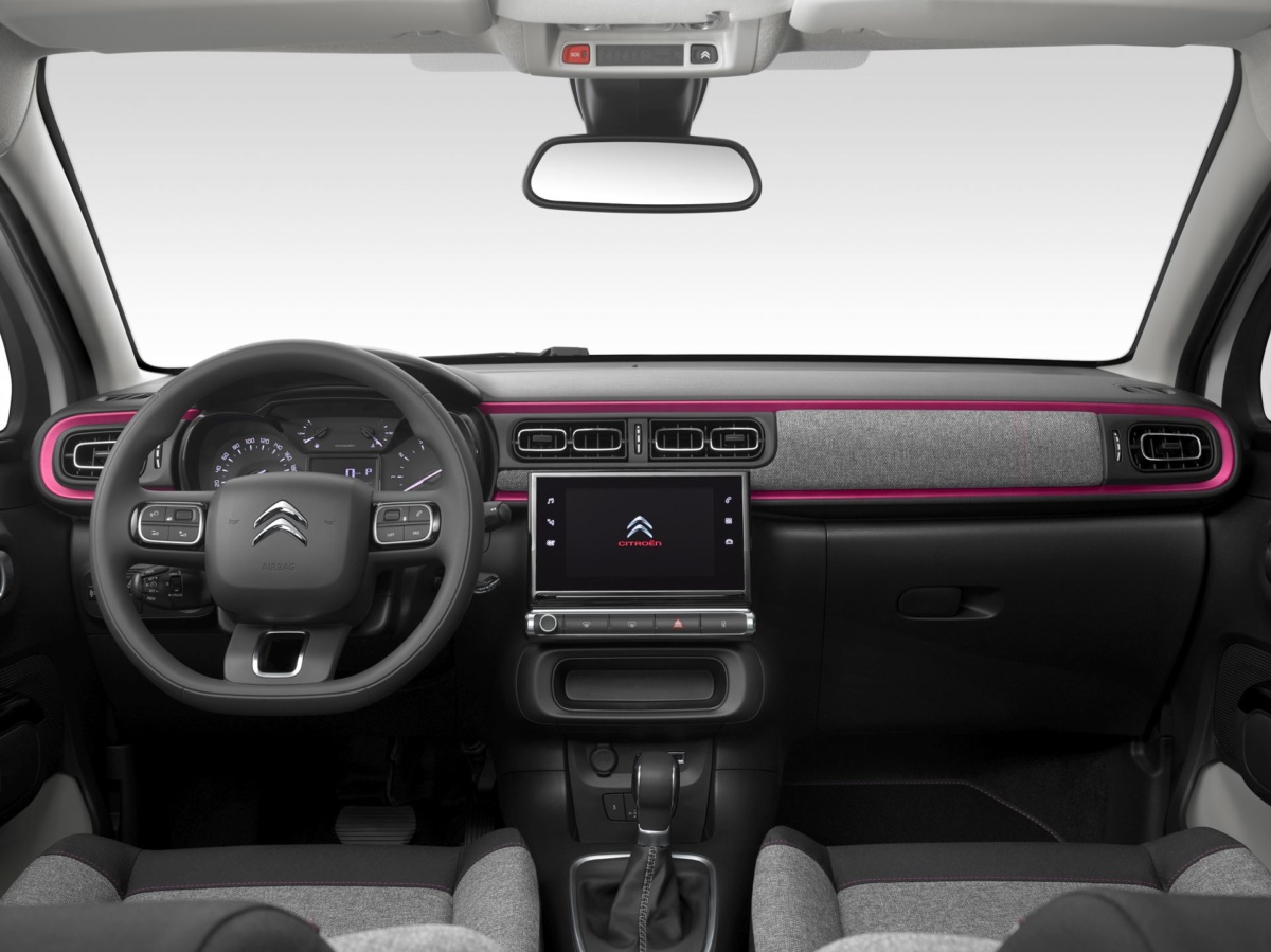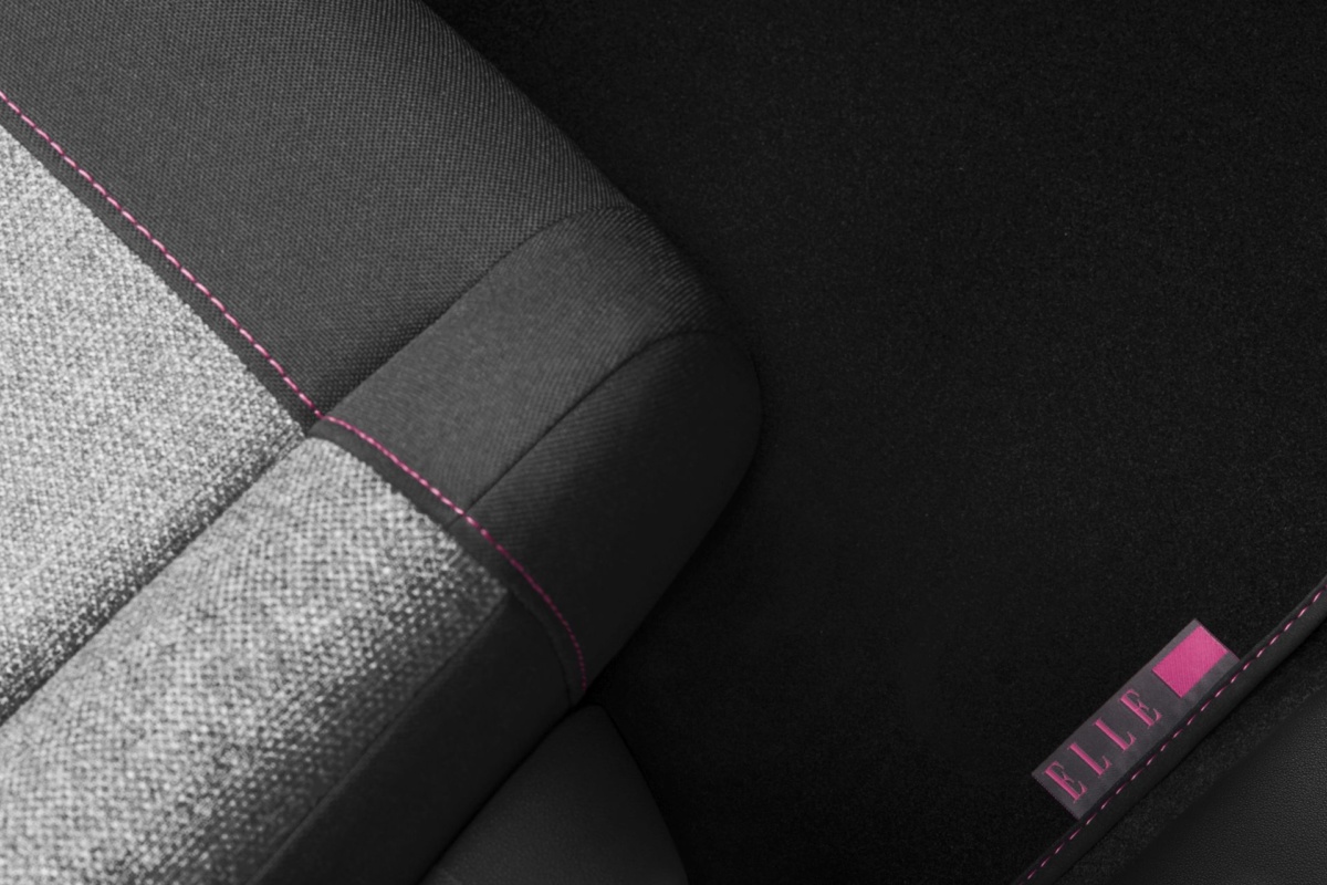 Во-вторых, CITROЁN C3 ELLE – это уникальный салон. Отделка из «теплой» серой ткани, которая умиротворяет и придает чувство уюта, дополнена розовой строчкой и декоративными вставками на передней панели, которые задают позитивный настрой. Кроме того, эксклюзивная версия CITROЁN C3 ELLE отличается фирменными «именными» ковриками – с логотипами ELLE.