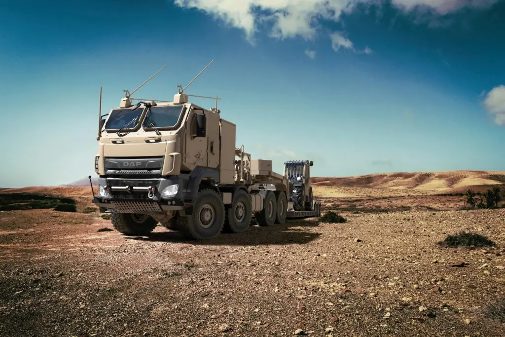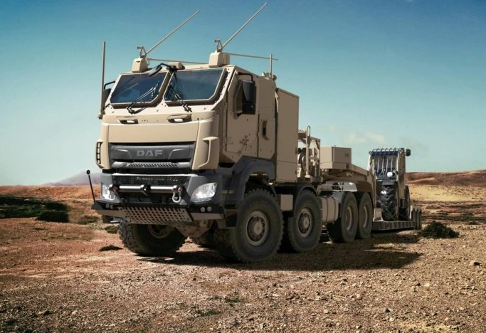Новый заказ включает четырехосные полноприводные тягачи CF Militar(8х8) и трехосные раздвижных низкорамных полуприцепы от фирмы Broshuis. Для постройки моделей CF Military компания DAF тесно сотрудничает с известной чешской компанией Tatra Trucks. Результатом стала уникальная концепция шасси с первоклассной трансмиссией и центральной трубчатой рамой, на которой установлена независимая подвеска колес.