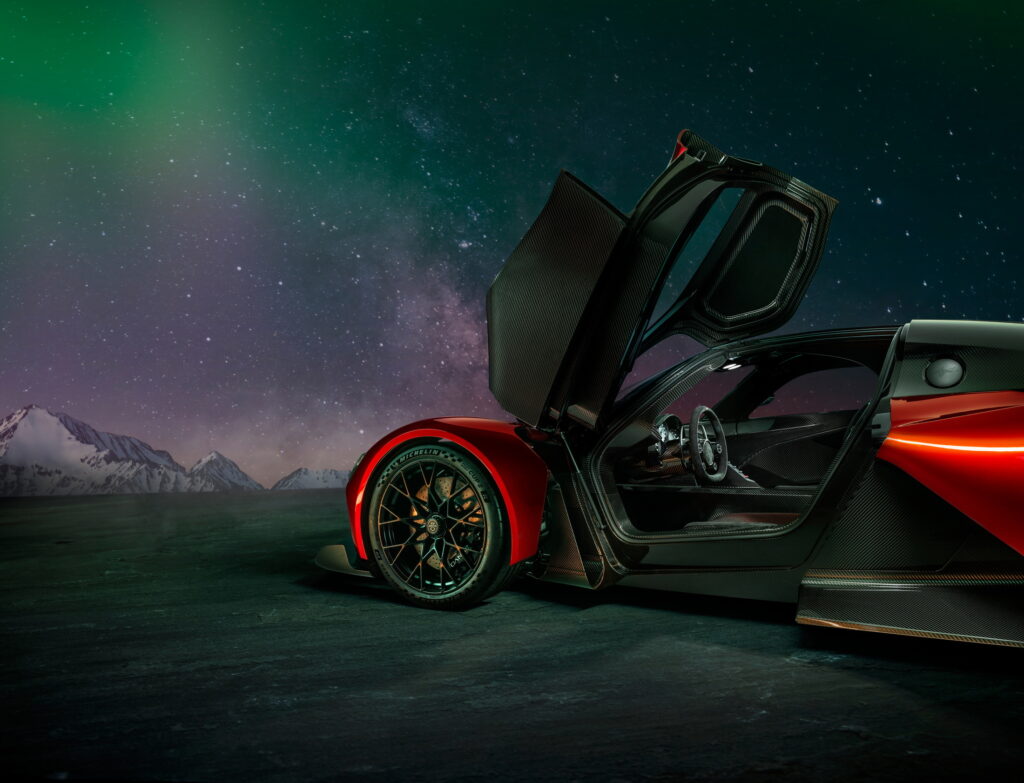 Также ему достался чрезвычайно легкий алюминиевый двигатель V12. Масса 6,6-литрового агрегата с четырьмя турбонагнетателями всего 260 кг. Мощность мотора — 1267 л.с. при максимальных 9800 об/мин.