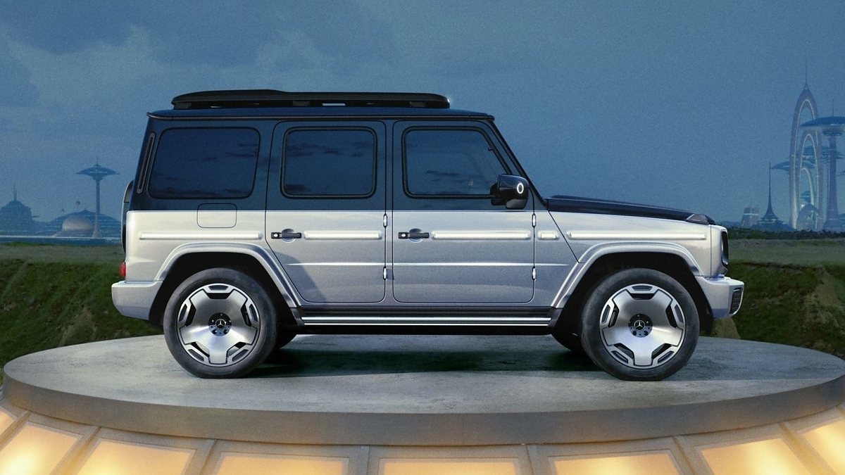 От топливной версии новый электрокар Mercedes EQG можно будет отличить по оригинальной светодиодной оптике, установленной на темной панели, заменяющей решетку радиатора, молдингам с подсветкой, специальному коробу на корме для хранения зарядного кабеля и 22-дюймовым аэродинамическим колесам.