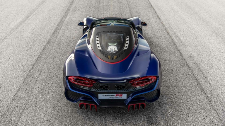 Еще одной особенностью родстера является крышка моторного отсека, выполненная из закаленного стекла. Вокруг нее есть четыре прорези, через которые отводится тепло от двигателя. Аналогичные вентиляционные отверстия есть в задней части автомобиля. Также Venom F5 получил уникальные кованные колесные диски.