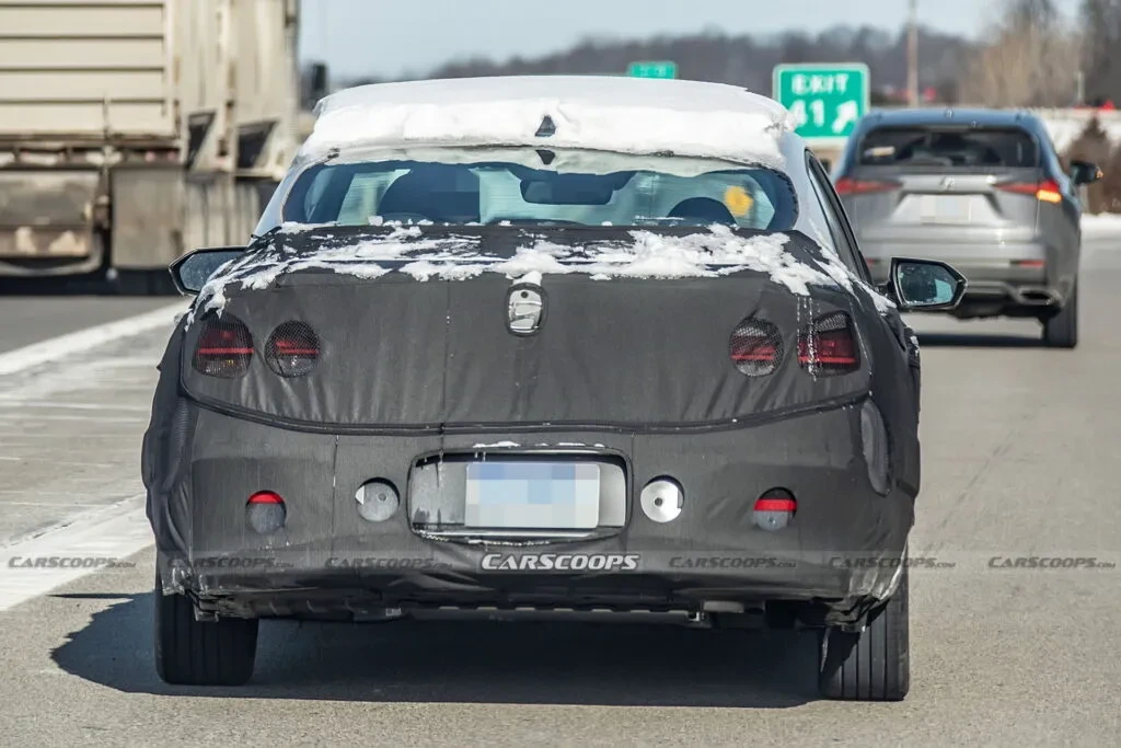 Из-под камуфляжа на боковинах просматривается характерная острая линия на дверях. На корме, предположительно, другая форма фонарей и багажной двери. Также переработали бампер, в частности, изменили положение отражателей.