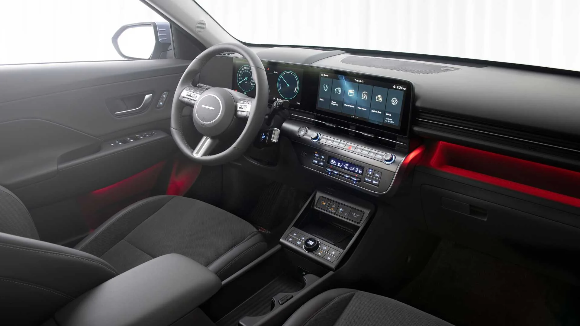 Прибавка в габаритах обещает более просторный салон и вместительный багажник. В стандартной комплектации — горизонтальный дисплей, состоящий из двух 12,3-дюймовых панорамных экранов и 12,0-дюймовый проекционный дисплей. Также Kona Electric предлагает камеры кругового обзора, аудиосистему Bose Premium Sounds и поддержку обновлений «по воздуху».