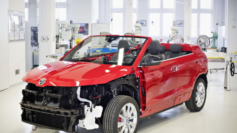 Студенты технического училища Skoda в Млада-Болеславе в этом году получили очередную возможность продемонстрировать свои знания и навыки. На базе модели Skoda Karoq был создан концепт-карт с открытым верхом. Так же, как и у серийного автомобиля, его длина составляет 4382 мм, ширина – 1811 мм, а колесная база – 2638 мм. Однако, благодаря использованию амортизаторов модели Skoda Octavia RS, кабриолет значительно ниже серийного Karoq.