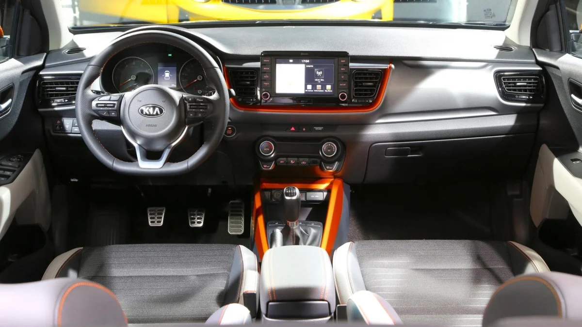 По имеющимся фото Кia Stonic, дизайн интерьера нового маленького SUV также будет вполне оригинальным. О родственной связи с Hyundai Kona напоминают лишь разноцветные вставки на центральной консоли.