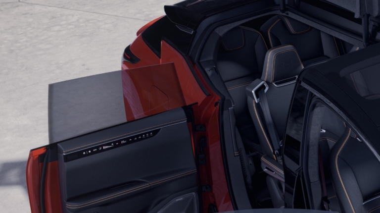 Одним из наиболее интригующих элементов дизайна новинки стали задние двери. Они представляют собой комбинацию «суицидальных» дверей, как у Rollse-Royce, и «крыла чайки», как у Mercedes 300 SL. То есть одна часть дверей открывается против хода движения, а вторая вместе с деталями крыши – вверх. Безусловно, такие двери уникальны, но насколько они практичны и есть ли у них преимущества перед «крыльями сокола», как у Model X, судить пока сложно.
