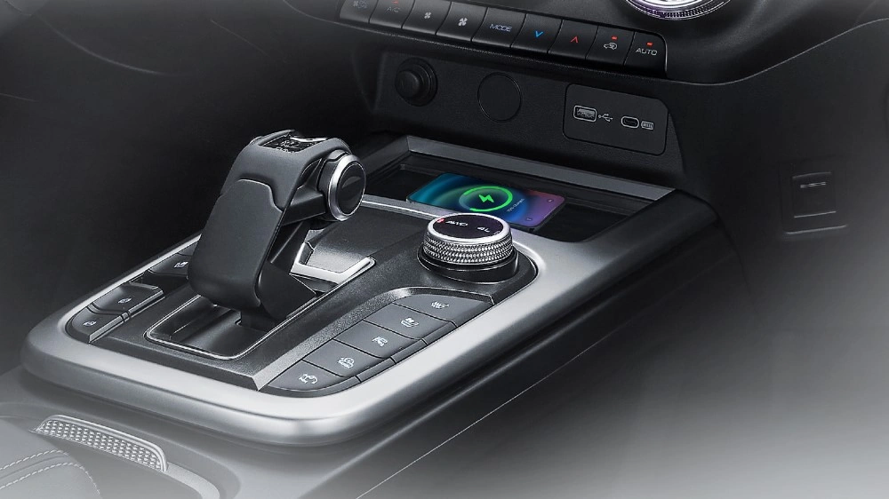 Интерьер внедорожника остался прежним: два 12,3-дюймовых дисплея и беспроводная зарядка мощностью 50 Вт для смартфона. Внешне отличие только одно — обновленная решетка радиатора с горизонтальными хромированными ламелями и новым логотипом.