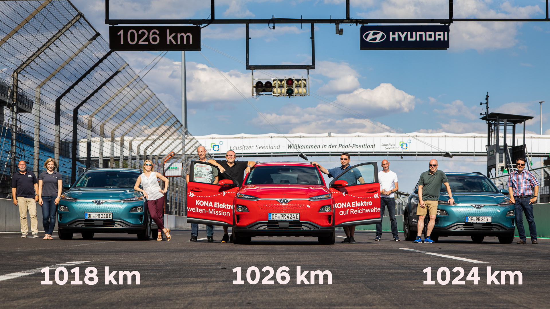 Компания Hyundai озвучила результаты замеров запаса хода электрического кроссовера Kona. В тестах, которые проходили на трассе Лаузицринг в Восточной Германии, участвовали три электрокроссовера. Максимальной целью испытателей была отметка 1000 км пробега без подзарядки, но кроссоверы Hyundai Kona Electric оказались дальнобойнее: 1018,7, 1024,1 и 1026 км соответственно.