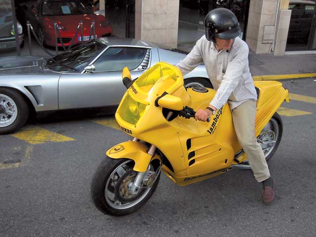 Но вернемся к мотоциклам. Они изначально должны были стать «№ 1» в мотомире, чего добиться не так легко, тем более не имея никакого опыта в производстве байков. Поэтому их выпуск поручили французской компании Boxer Bikes из Тулузы – признанным специалистам в мотоэксклюзиве! Там не стали ломать себе голову и пошли по пути еще одной мотолегенды – Bimota. А это использование лучших в мире японских двигателей плюс самые лучшие дополнительные комплектующие – будь то подвески, тормозные механизмы или выпускные системы! Для Lambo-байков решили закупать моторы Kawasaki разной кубатуры: 750, 900 и 1000 см куб., развивающие мощность 90 – 120 л. с., что позволяло достигать фантастической по тем временам скорости 260 км/ч. Само собой, только за счет двигателя таких показателей не добьешься. Секрет заключался в рекордно низкой и вызывающей уважение даже сейчас массе в 180 килограммов. Но как удалось добиться такой легкости? Очень просто: все самое современное, легкое, алюминиевое и дорогое! Так, диагональная рама и рычаг задней подвески, разработанные Клодом Фиором (Claude Fior), стали настоящим произведением искусства, амортизаторы – от фирмы Fournales, выхлопная система Devil (и тут дьявол!). Чего только стоят дизайнерские трехспицевые диски Gotti, созданные специально под этот конкретный мотоцикл! Резина на них от местной Michelin. И на закуску – покрытые чистым золотом или кадмием тормозные суппорты от… правильно – Brembo.