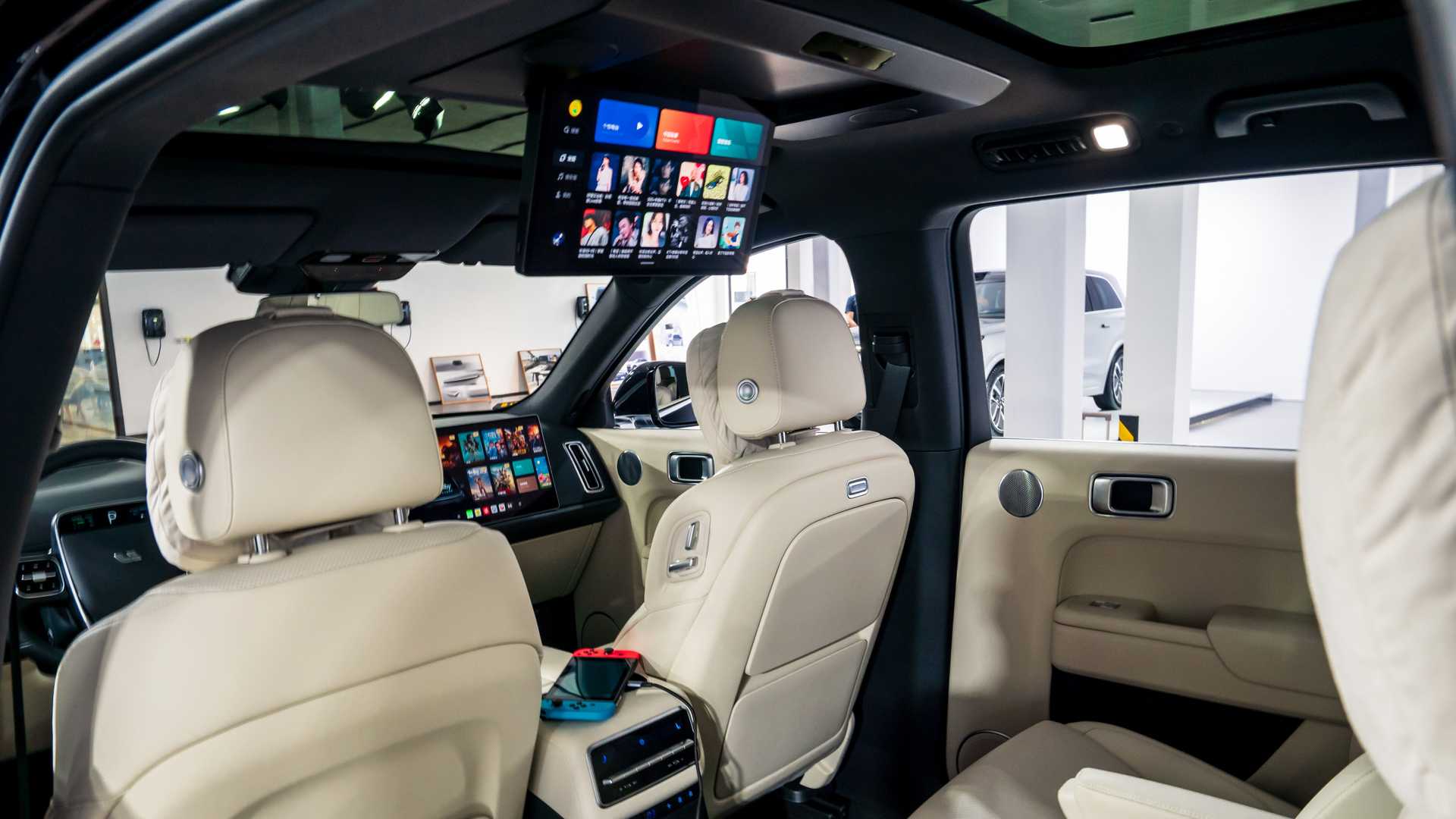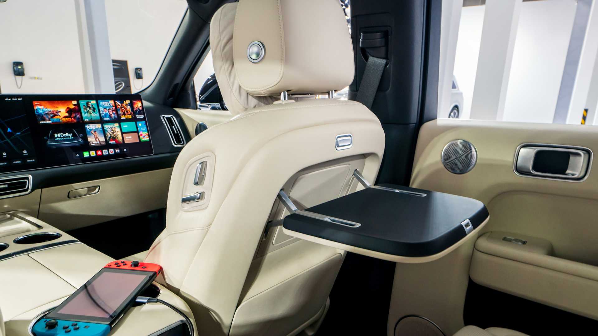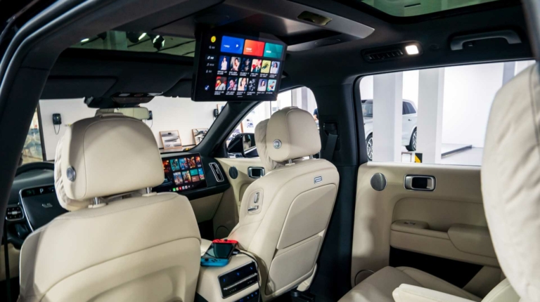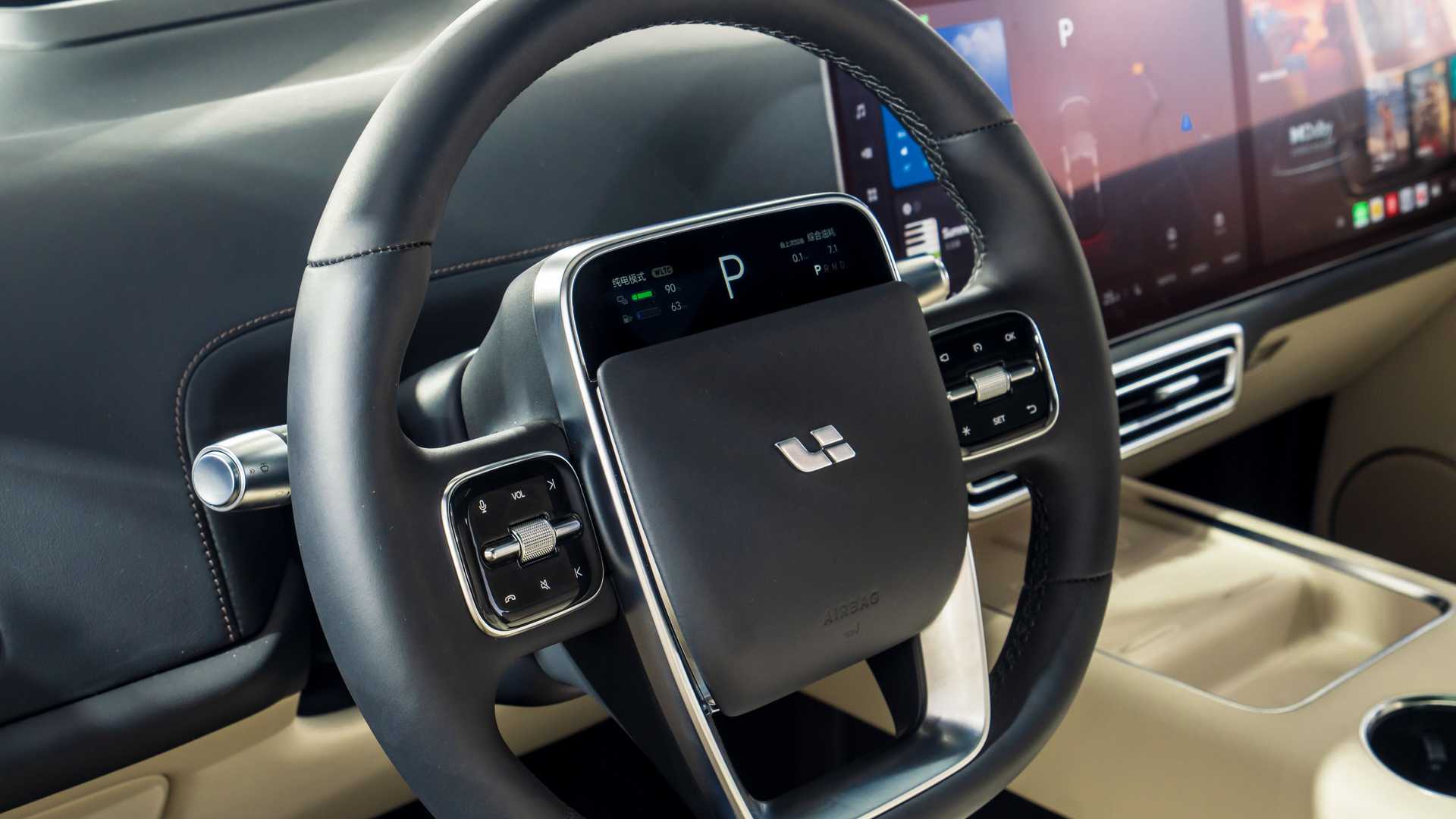 В четырехместном салоне — два 15,7-дюймовых экрана толщиной всего 4 мм каждый. Как утверждают в Li Auto, на данный момент это самые плоские дисплеи из доступных на рынке. Под ними расположились два беспроводных зарядных устройства для гаджетов. Вся важная информация об автомобиле выводится на небольшой экран, интегрированный в ступицу рулевого колеса.