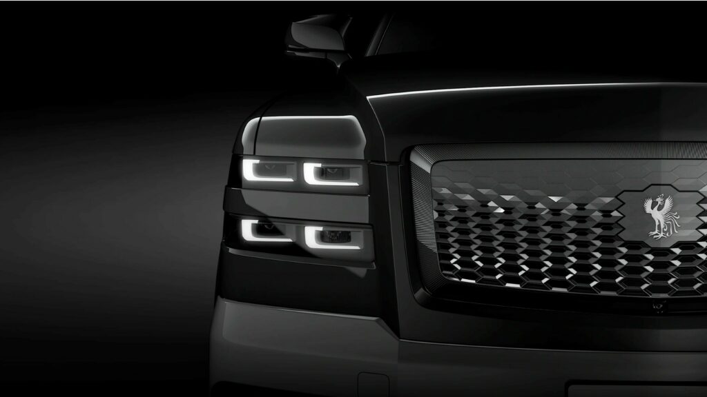 Косвенно это предположение подтверждают опубликованные компанией тизеры. На одном из них шофер открывает заднюю пассажирскую дверь высоко поднятого над землей автомобиля. И у этого автомобиля не характерная для седана дверь багажного отделения. Новое изображение демонстрирует переднюю часть кузова с фигуркой «феникса» на решетке радиатора. Отдельного внимания заслуживает двухэтажная оптика с четырьмя отдельными элементами, как у старых Chevrolet Tahoe.