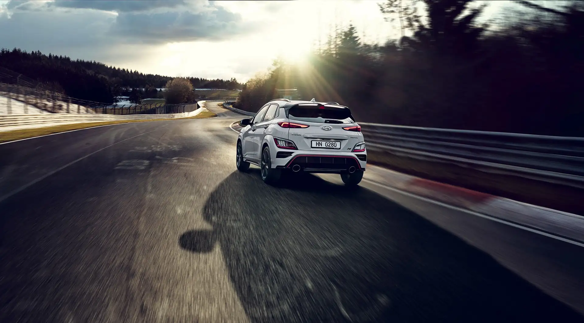 От стандартной версии высокопроизводительная Кона отличается усиленными кузовом и днищем. Установлена заниженная подвеска, 19-дюймовые колесные диски и выхлопная система с двумя крупными патрубками. Среди визуальных отличий можно отметить уникальную решетку радиатора, спортивные пороги, крупный передний сплиттер, красные акценты и шильдики N. Крылья окрашены в цвет кузова, тем самым делая авто визуально шире.