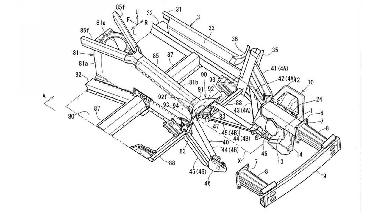 На этой неделе Mazda порадовала поклонников сразу несколькими патентными заявками, которые моментально начали обрастать слухами. Оба патента относятся к конструкции задней подвески и кузова. На рисунках видны различные балки и рамные фермы с пояснениями к ним.