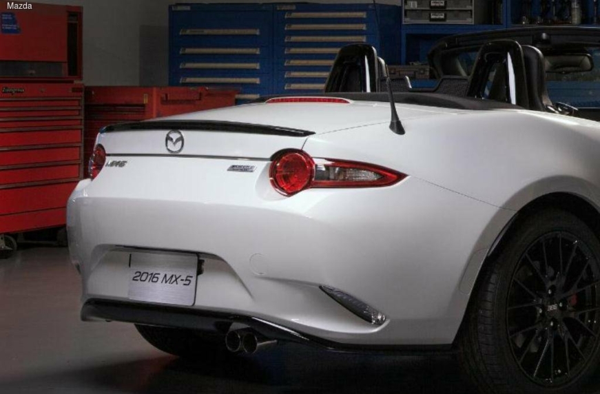 Mazda решила не ждать автосалона SEMA в Лас-Вегасе, который пройдет в сентябре 2015 года, чтобы официально представить фирменный тюнинг-пакет для своего нового родстера MX-5. Краткий официальный релиз сообщает, что премьера пакета доработок состоится в феврале на международном автосалоне в Чикаго. По словам японского автопроизводителя, владельцы родстера Mazda MX-5 смогут найти в фирменных магазинах все, чтобы максимально персонализировать свой автомобиль. На небольшом тизере мы видим, что авто получит сдержанный спойлер на крышке багажника, задний фартук и новые черные легкосплавные колесные диски BBS.